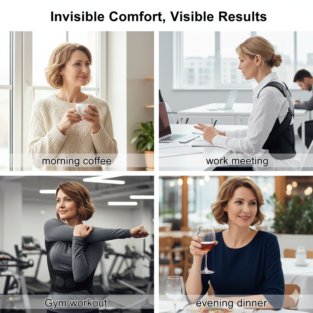 Most posture devices are bulky, uncomfortable torture devices you can barely stand for an hour. Our ultra-soft, breathable fabric and invisible design means you'll forget you're wearing it – but your body won't forget the benefits. Unlike rigid braces that restrict movement, this moves with you while providing therapeutic support from morning to night.